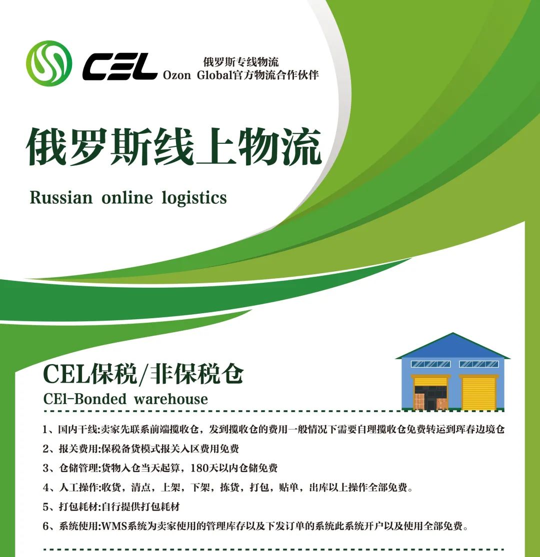 CEL 成立于 2014 年,是一家集海关申报、仓储、物流运输、俄罗斯进口清关于一身的跨境电商 “一站式” 综合服务企业。作为目前唯一拥有俄罗斯商业快递清关执照的中资企业,CEL 还是 Ozon、WB、Yandex Market、速卖通等跨境电商平台官方物流服务商。